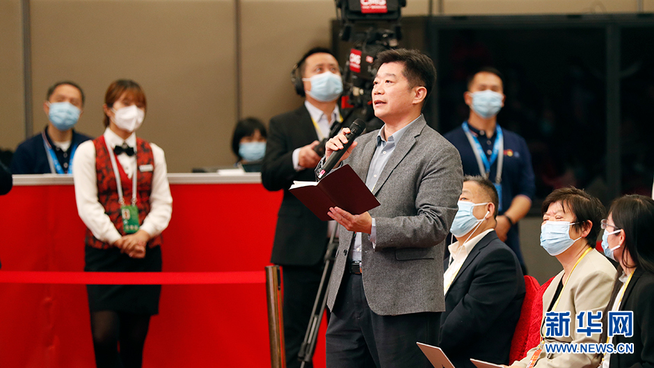 10月19日(星期三)15:00,二十大新聞中心在梅地亞新聞中心二層新聞發布廳舉辦第三場集體采訪。圖為香港商報記者在分會場提問。(新華網 陳杰 攝)