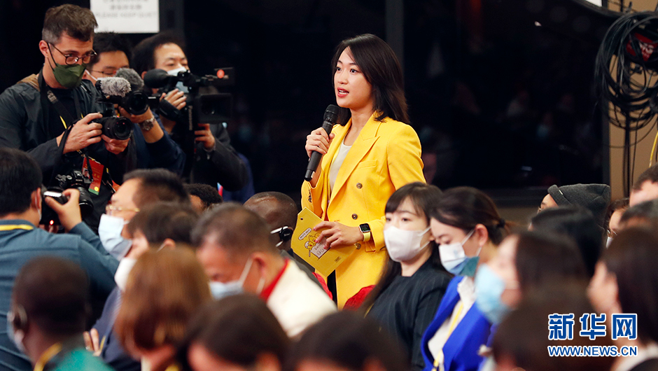 10月20日(星期四)10:00,二十大新聞中心在梅地亞新聞中心二層新聞發布廳舉辦第四場記者招待會。圖為中央廣播電視總臺CGTN記者在分會場提問。(新華網 陳杰 攝)
