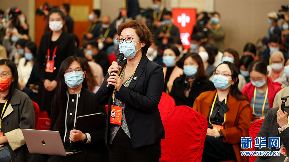 10月20日(星期四)19:30,二十大新聞中心在梅地亞新聞中心二層新聞發布廳舉辦第五場集體采訪。圖為新京報記者在分會場提問。(新華網 陳杰 攝)
