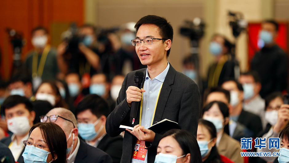 10月20日(星期四)19:30,二十大新聞中心在梅地亞新聞中心二層新聞發(fā)布廳舉辦第五場集體采訪。圖為中國外文局中國報道雜志記者提問。(新華網(wǎng) 陳杰 攝)