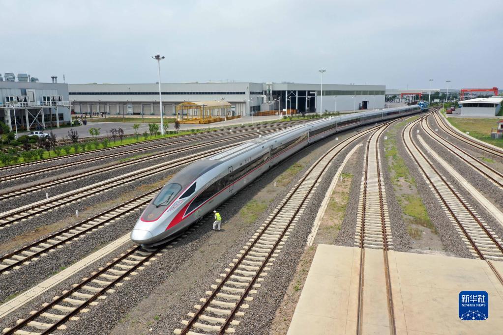 在位于山東青島的中車四方股份公司,一輛復興號列車正在出廠(2021年7月1日攝)。新華社發