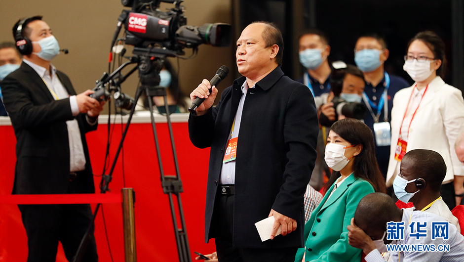 10月21日(星期五)10:00,二十大新聞中心舉辦第五場記者招待會。圖為香港紫荊雜志社記者在分會場提問。(新華網 陳杰 攝)