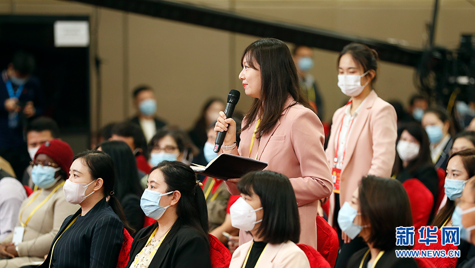 10月21日(星期五)10:00,二十大新聞中心舉辦第五場記者招待會。圖為中央廣播電視總臺記者在分會場提問。(新華網 陳杰 攝)