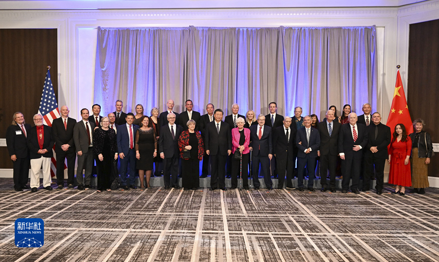 當地時間11月15日晚,國家主席習近平在美國舊金山出席美國友好團體聯合舉行的歡迎宴會。這是宴會開始前,習近平會見飛虎隊和史迪威將軍后人、鼓嶺、艾奧瓦州、華盛頓州等方面友好人士代表,同他們親切交談并合影留念。