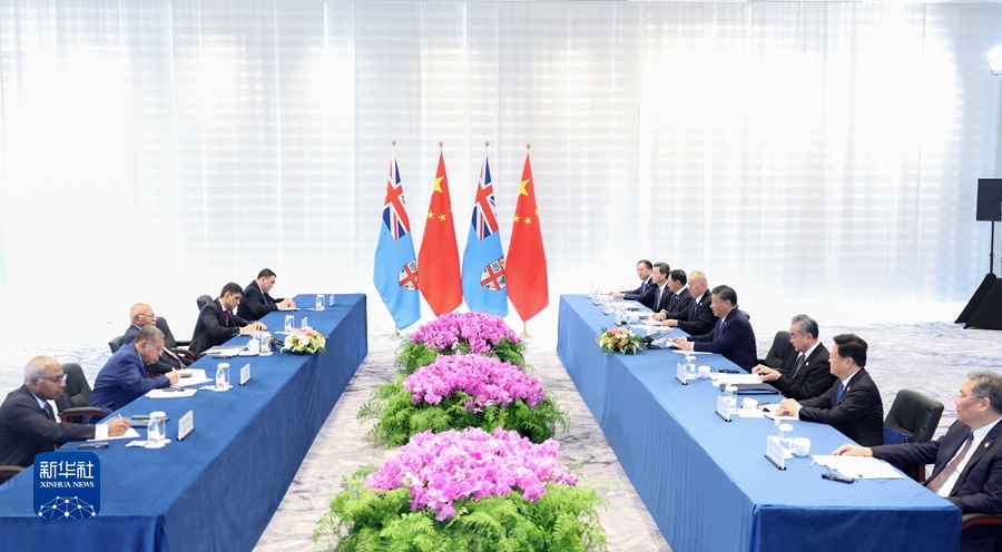 習(xí)近平會(huì)見斐濟(jì)總理蘭布卡