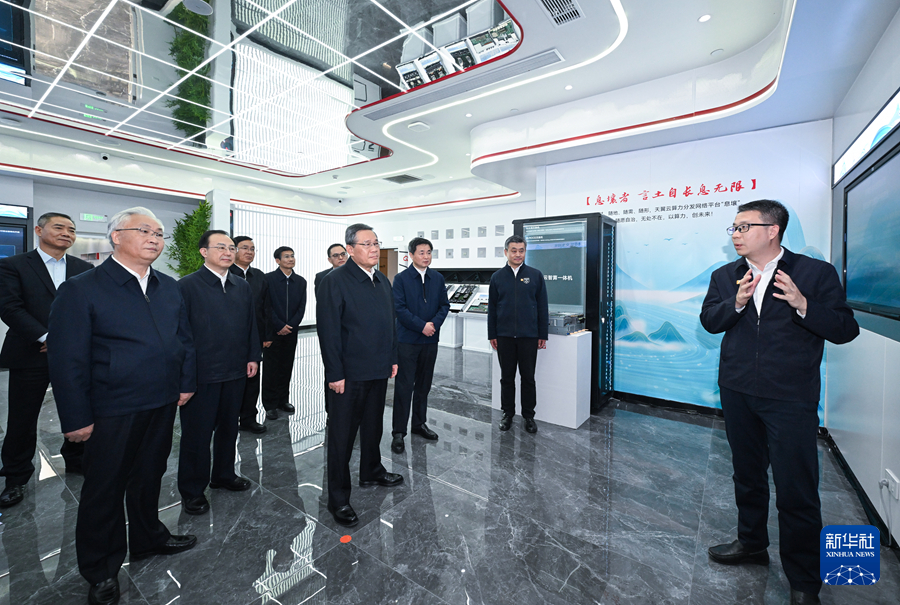 李强首先来到中国电信天翼云科技有限公司,听取天翼云建设、量子通信发展等介绍。李强指出,当前围绕新一轮科技革命和产业变革的竞争更加激烈,必须坚定不移推进自主创新,加快重点领域研发布局,加紧原创性、引领性技术攻关。要突出需求导向、应用牵引,推动新技术与各行业融合创新,为产业转型升级注入新动能。
