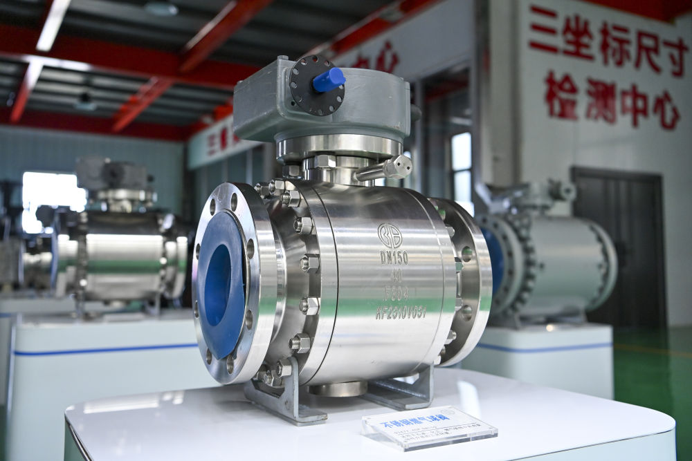 这是7月7日在阳泉阀门股份有限公司装配成品车间拍摄的不锈钢燃气球阀。