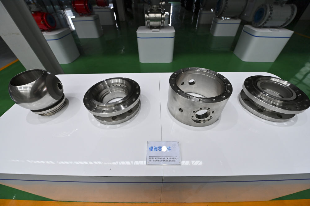 这是7月7日在阳泉阀门股份有限公司装配成品车间拍摄的球阀零部件。