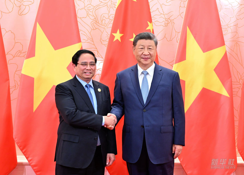 8月31日,国家主席习近平在天津会见越南总理范明政。
