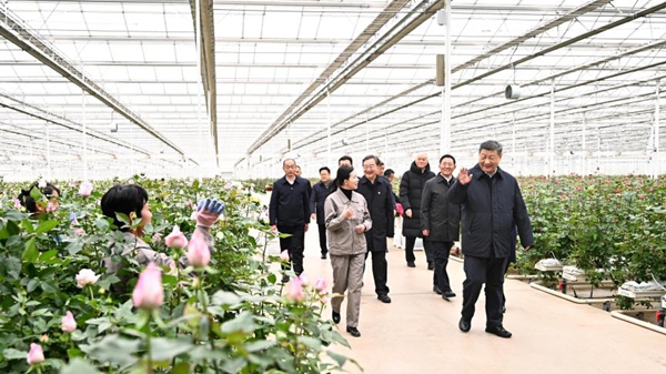 3月19日下午,习近平总书记来到云南丽江现代花卉产业园,同现场村民和技术人员亲切交流,向他们询问花卉品种、市场销路、收入等情况。