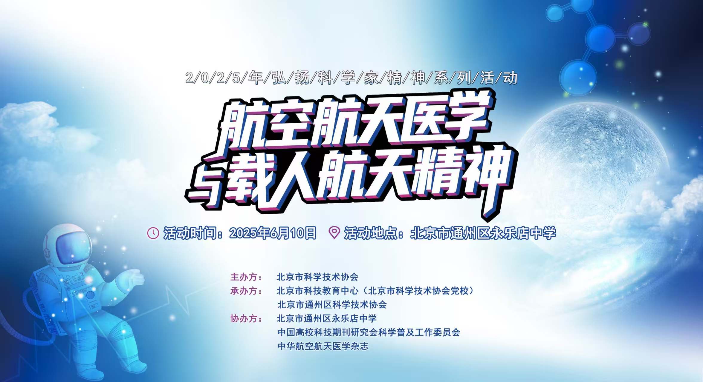 6月10日,中華醫學會航空航天醫學分會秘書長王志翔,走進北京市通州區永樂店中學,為現場200余名青少年帶來一場題為《航空航天醫學與載人航天精神》的報告。