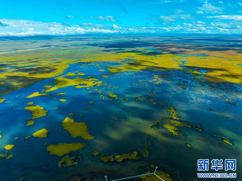 资料图片:俯瞰若尔盖花湖,碧波荡漾,一望无垠。