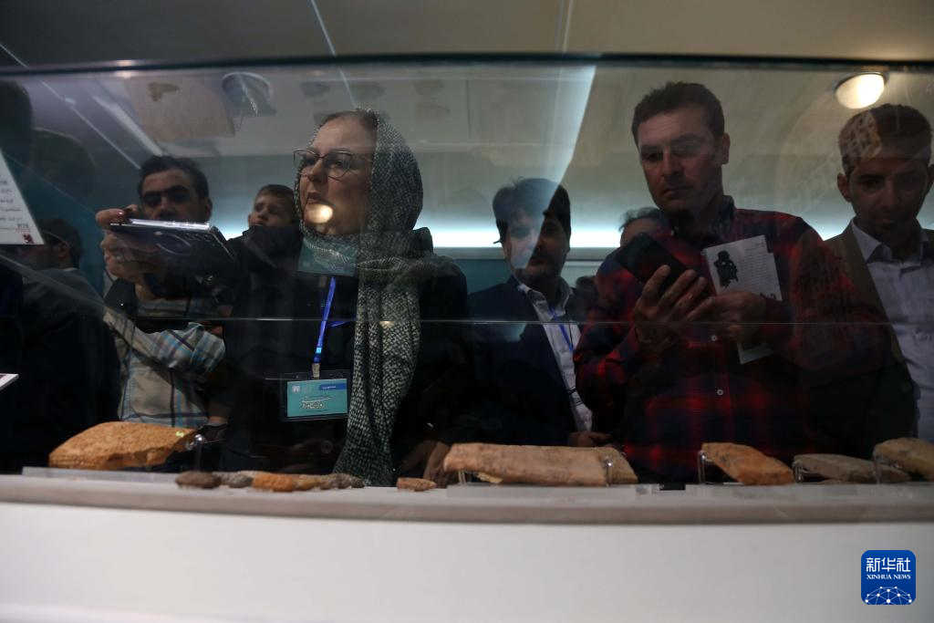 5月18日,在伊朗德黑兰,人们在伊朗国家博物馆观看展出的古泥板。