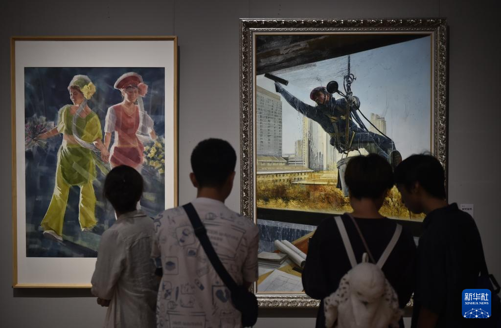 8月31日,观众在中国美术馆参观展出作品。