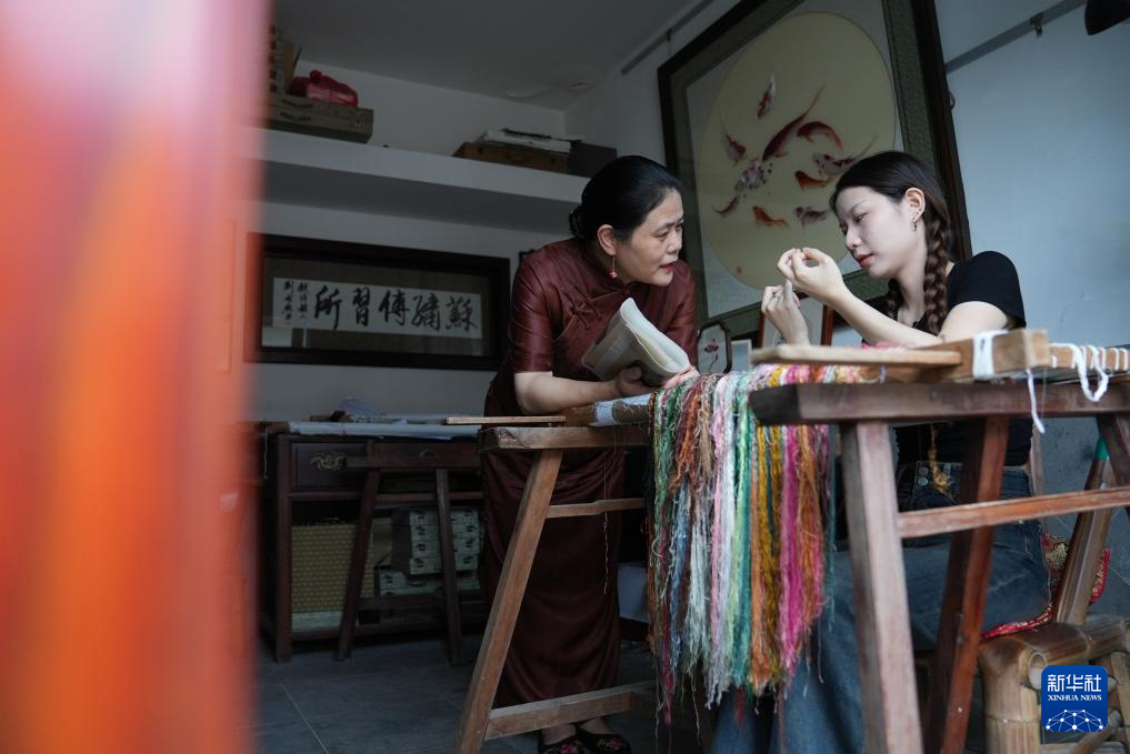 “一架绣绷,十指春风。”一幅好的苏绣作品常常需要耗费数月甚至数年的时间完成,从小跟着祖母和母亲学习苏绣的卢建英热爱并执着于苏绣研究与创作,她希望让每一幅经由时间“穿过”的作品更有艺术生命力。如今,她将苏绣技艺传给女儿,也想通过传习所让更多人接触到苏绣,传播非遗文化。