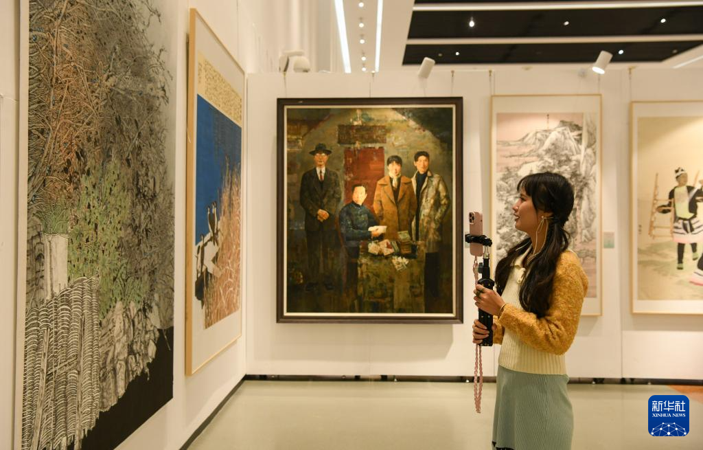 12月20日,观众在欣赏书画作品。