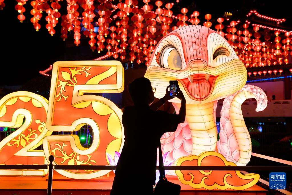 1月21日晚,吉隆坡举行“祥蛇献瑞福满春”新春亮灯仪式,迎接2025乙巳蛇年的到来。