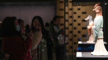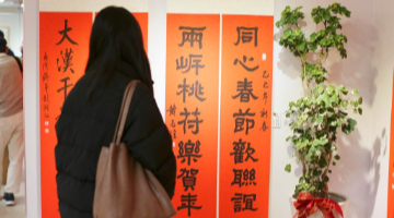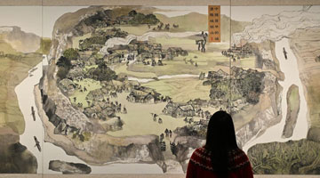 1月23日,观众在美国加利福尼亚州奥兰治县南海岸广场观看“美国顶尖摄影师旅拍广东”摄影展。