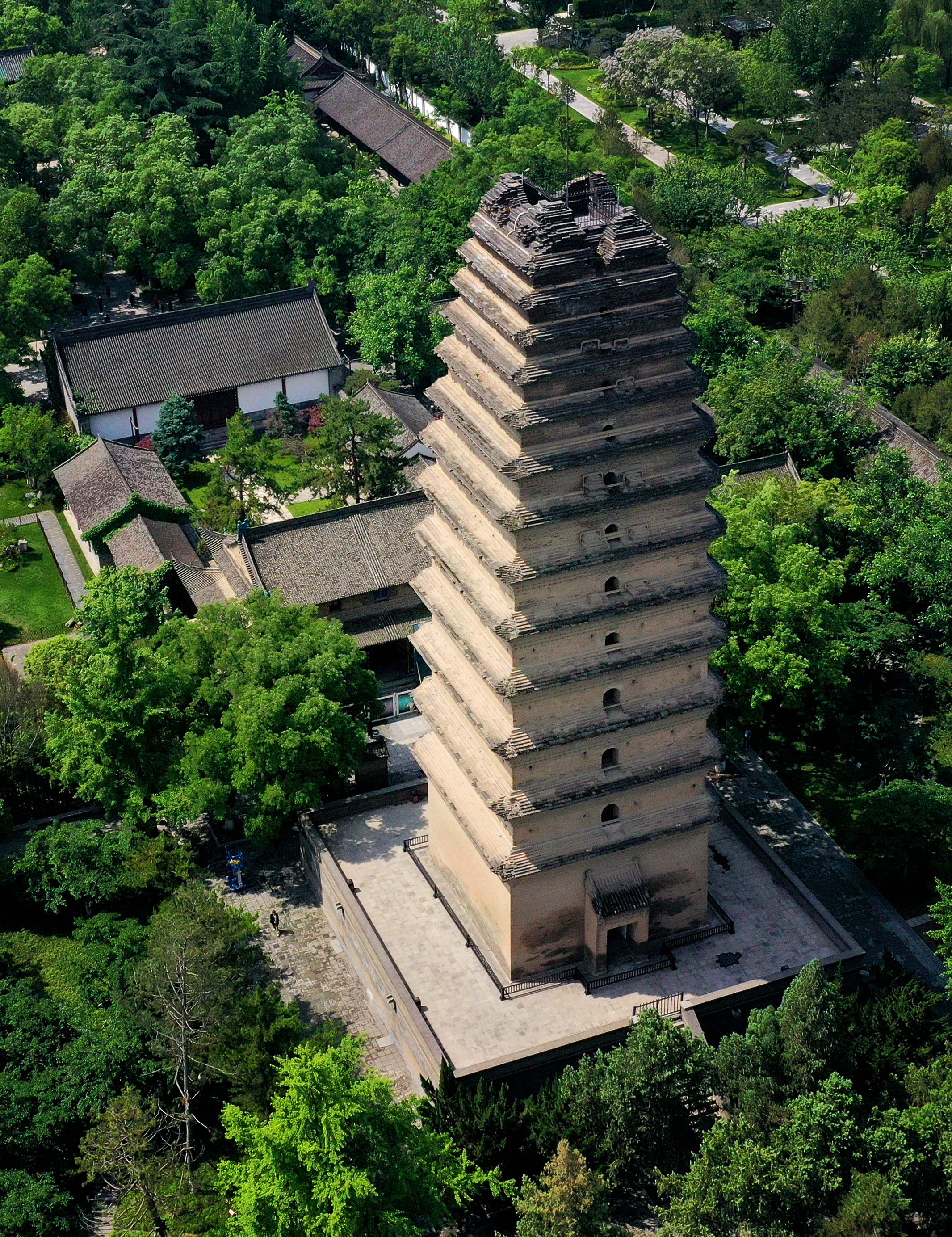 西安大雁塔(4月19日摄,无人机照片)。新华社记者 刘潇 摄