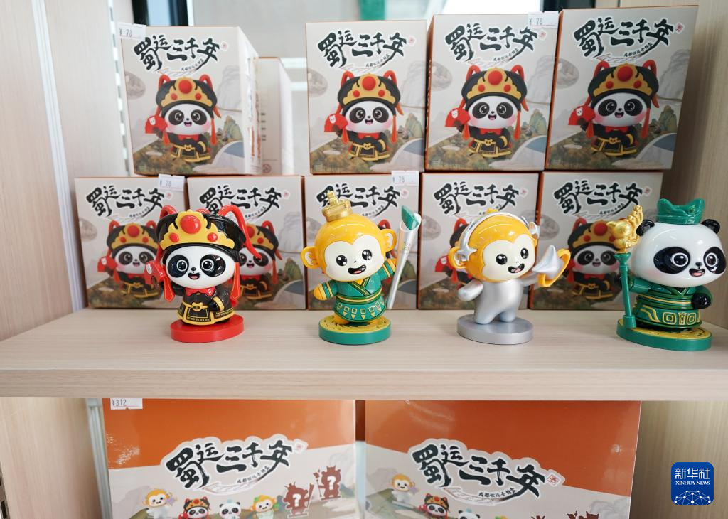 这是4月29日在成都世运会官方特许商品零售店“北京首店”拍摄的蜀运三千年系列商品。