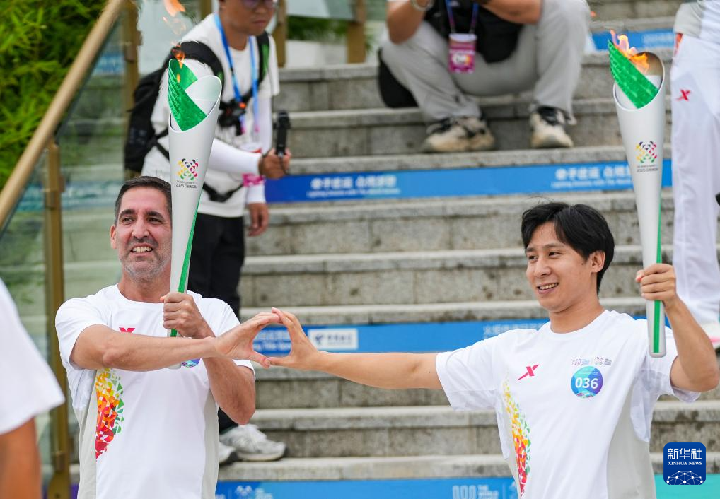 7月26日,2025年第12届世界运动会火炬传递活动在四川举行,这是世运会历史上首次举行火炬传递,百余名火炬手参与传递。