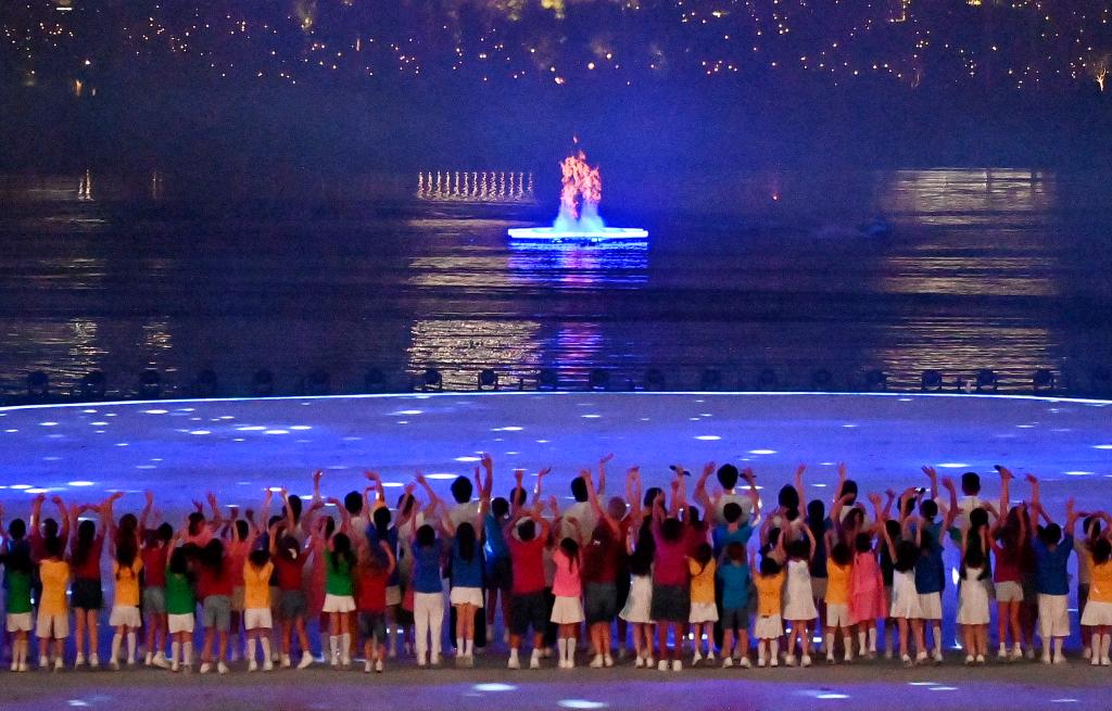 8月7日,主火炬在开幕式现场被点燃。新华社记者 邬惠我 摄