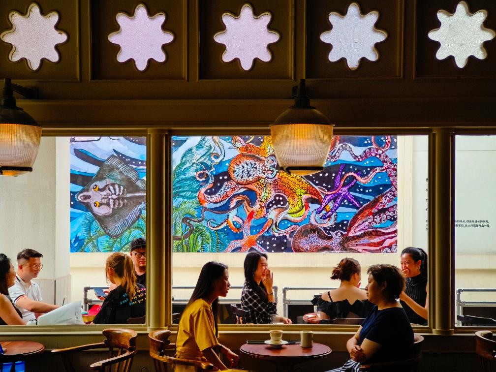 人们在成都大源中央公园内咖啡馆喝咖啡。新华社记者 沈伯韩 摄