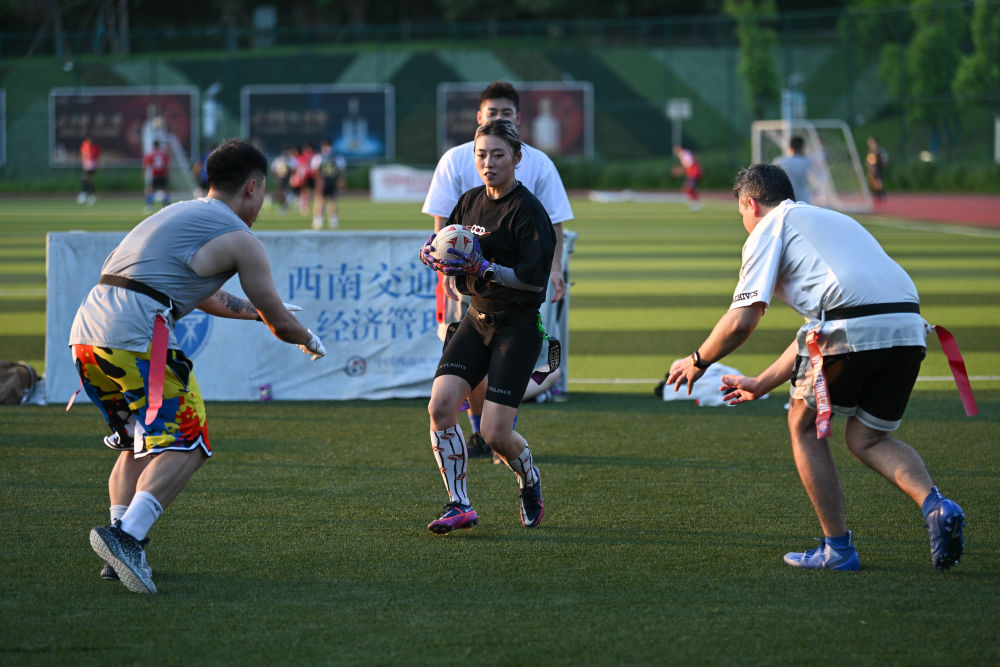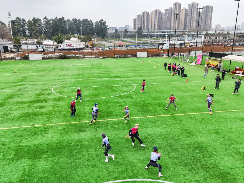 ↑成都世运会腰旗橄榄球比赛场地——成都七中东部学校田径场