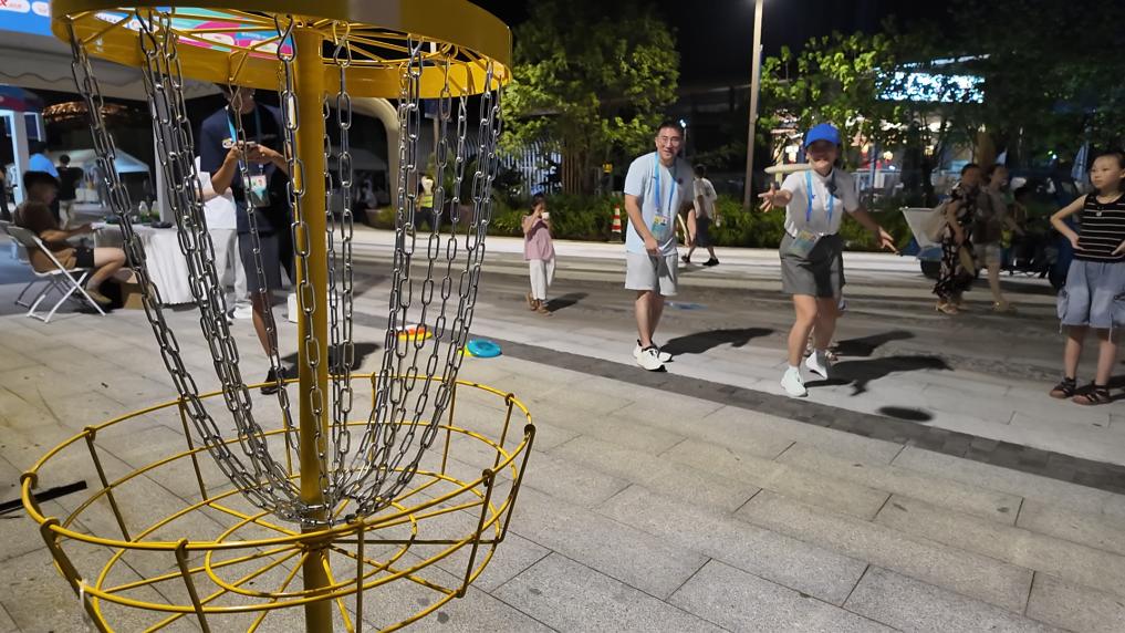 两位记者在世运广场上比拼了腰旗橄榄球、抛竿和飞盘三个项目,来看看他们谁将获胜呢?