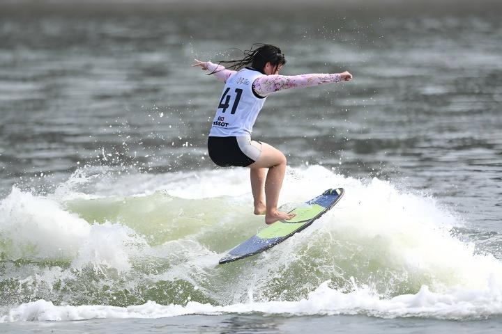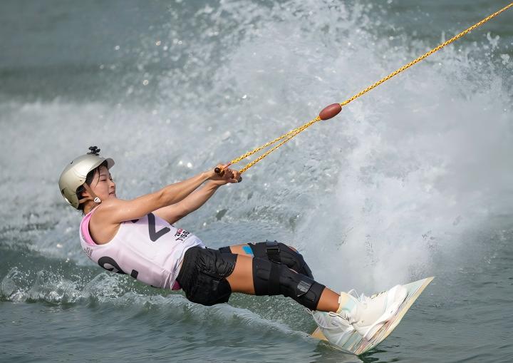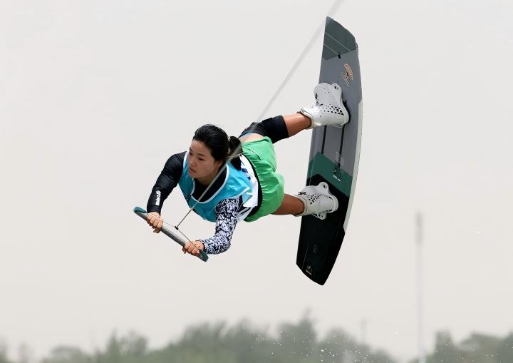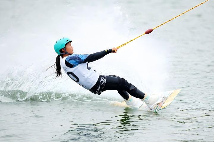 中国运动员韩秋斩获女子尾波滑水项目冠军