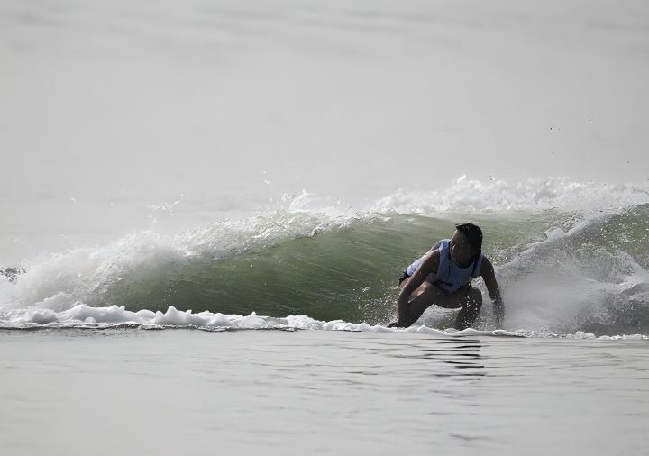 8月8日,乌克兰选手索尼娅·索科洛娃在尾波冲浪比赛中。新华社记者 陈振海 摄