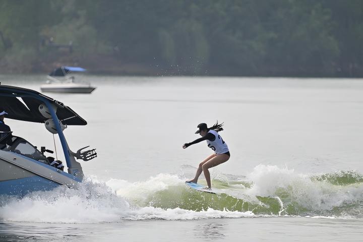 徐露在2024亚洲尾波滑水系列赛石家庄站比赛中。新华社记者 杨世尧 摄