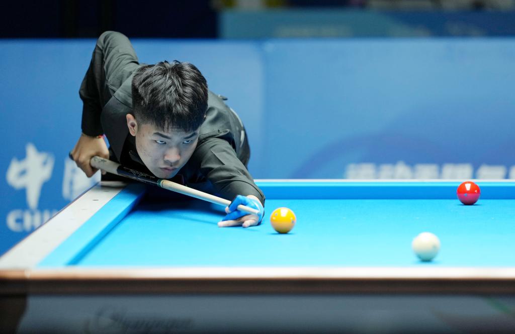 8月10日,中国选手钱家乐在比赛中。当日,在2025年成都世运会台球男子三库开伦预赛中,中国选手钱家乐不敌埃及选手西杜姆。新华社记者 胥冰洁 摄