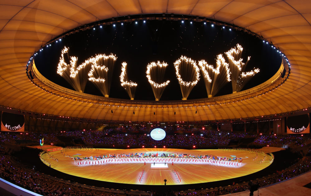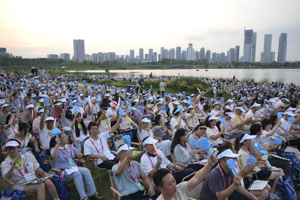 ↑8月7日,观众在世运会开幕式现场。新华社记者徐速绘摄