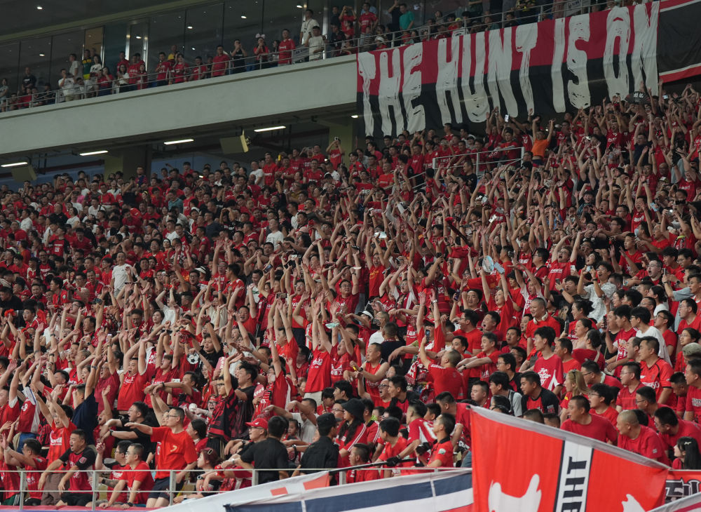 ↑2024年11月2日,在成都凤凰山体育公园专业足球场,成都蓉城队球迷在2024赛季中超联赛中为球队加油助威。新华社发(尹钢摄)