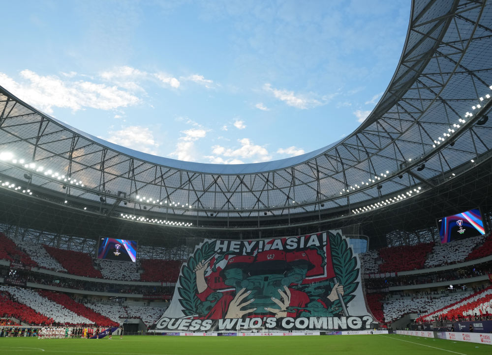 ↑8月12日,在亚冠附加赛现场,成都蓉城队球迷在赛前观众席上打出巨幅TIFO(可覆盖看台的大型横幅或拼图)。新华社记者王曦摄