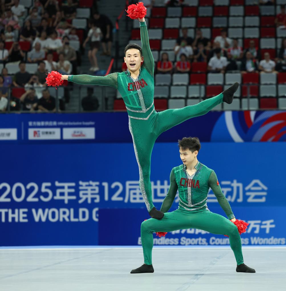 此外,中国队当日在健美操三人操、自由式轮滑男子速度过桩项目获得金牌。