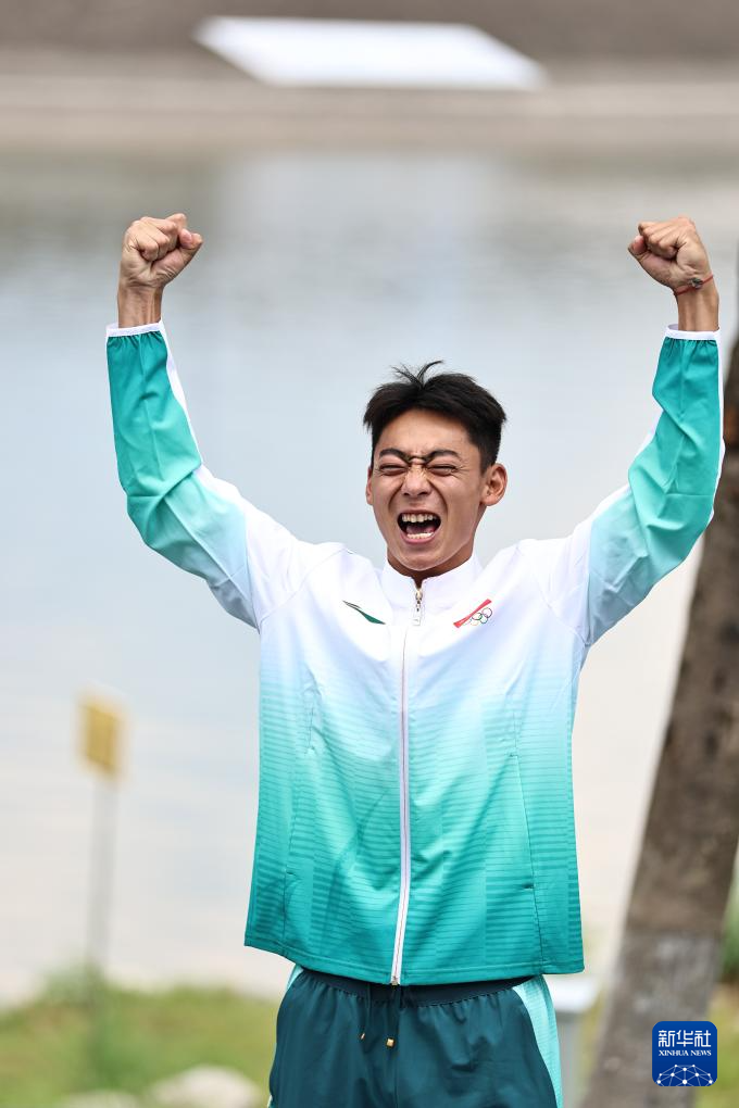 8月17日,中国选手张茂竹在冲线后庆祝。