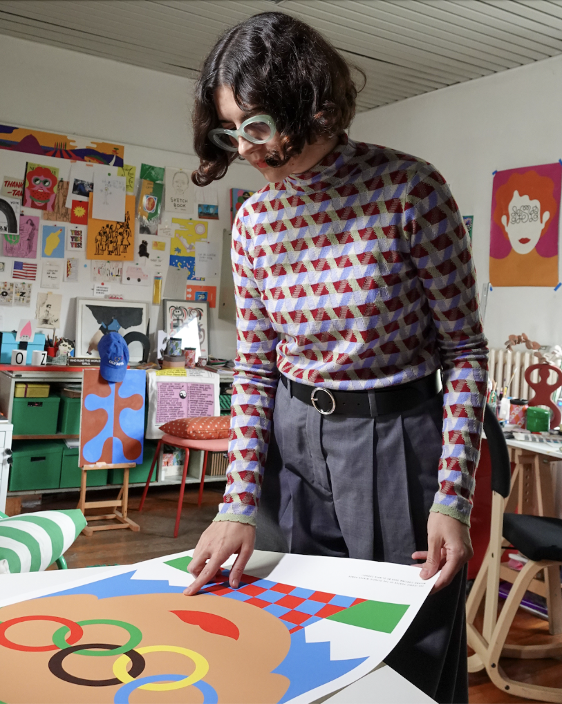 扎尼奥利创作的冬奥会海报以鲜明、直接的图像语言捕捉赛事的动感与激情,将米兰的都市气质与科尔蒂纳的自然之美融为一体。作品通过开放、包容的视觉构图象征奥林匹克价值观,传达对多样性与团结的赞颂。