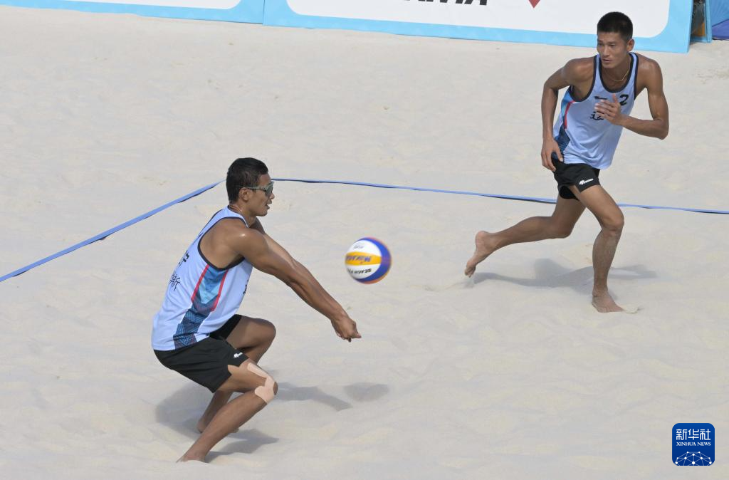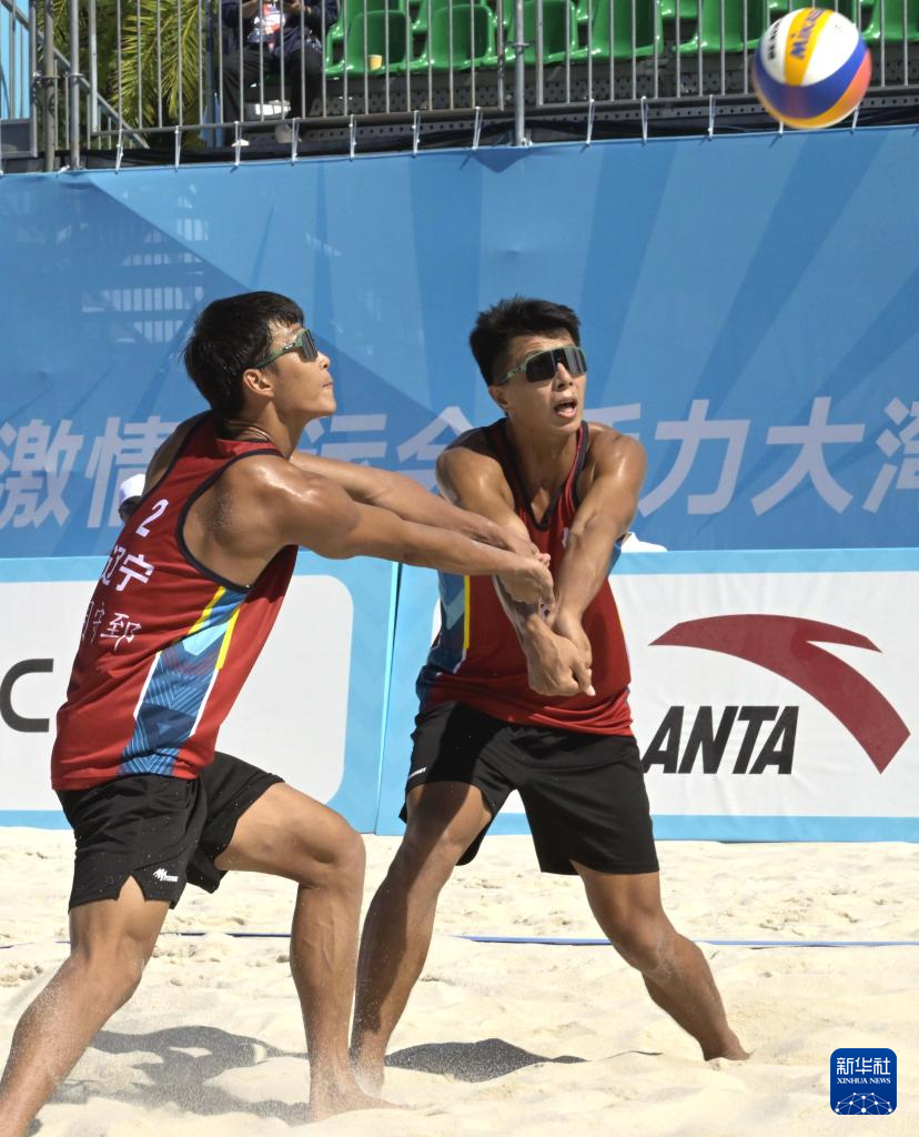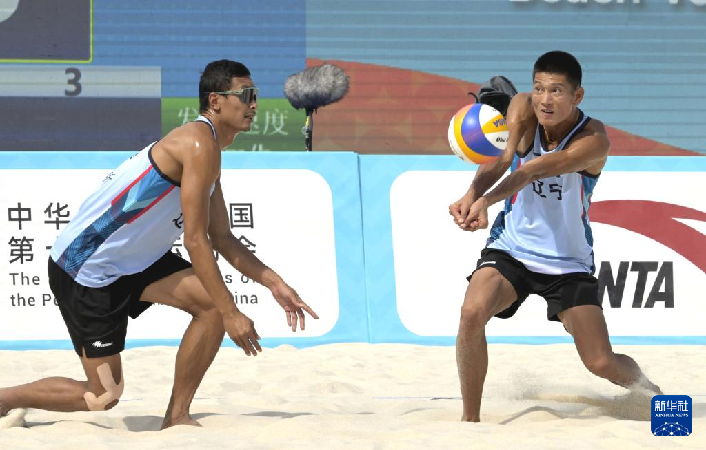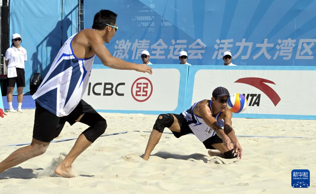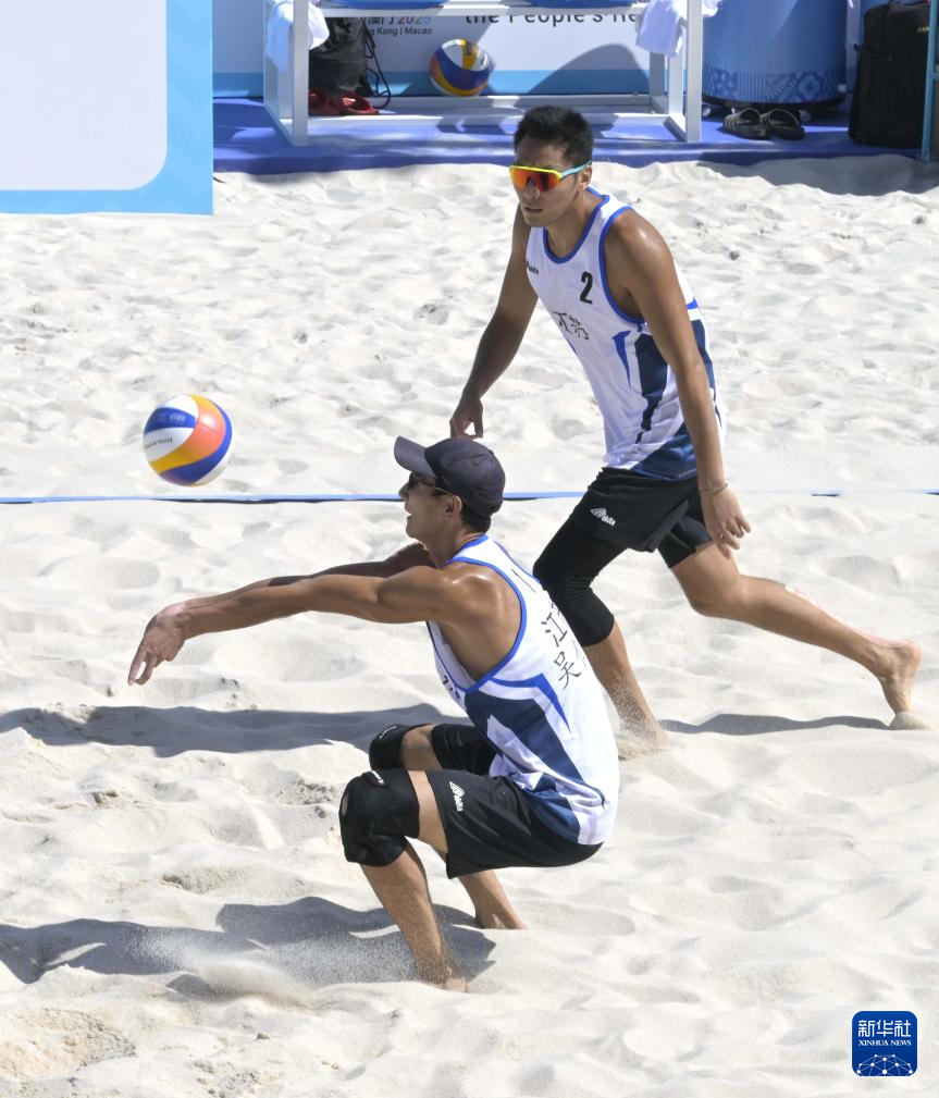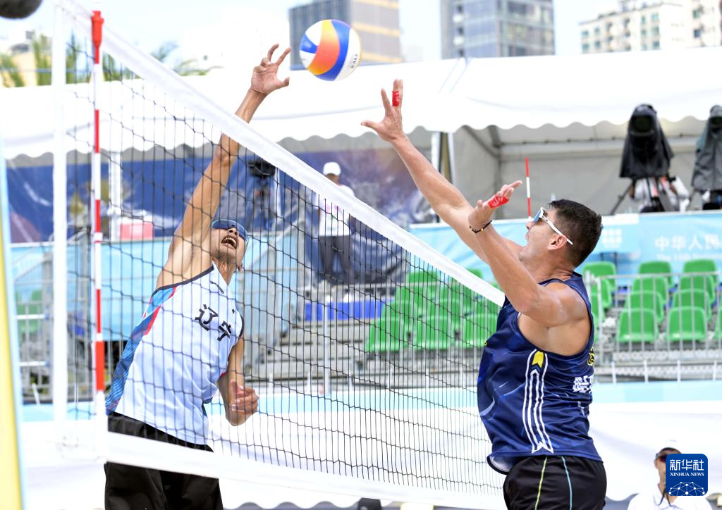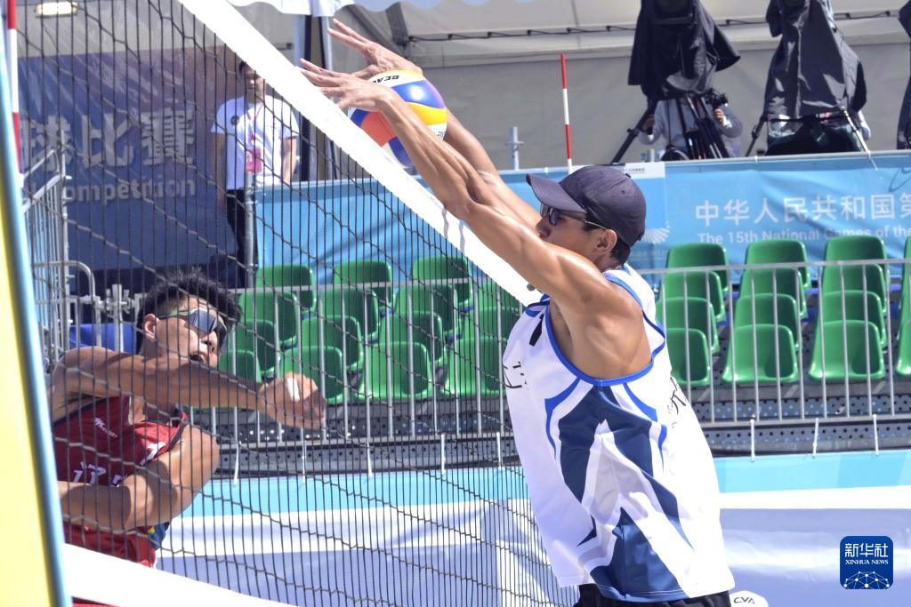 当日,第十五届全国运动会沙滩排球男子1/8决赛在香港维多利亚公园进行。