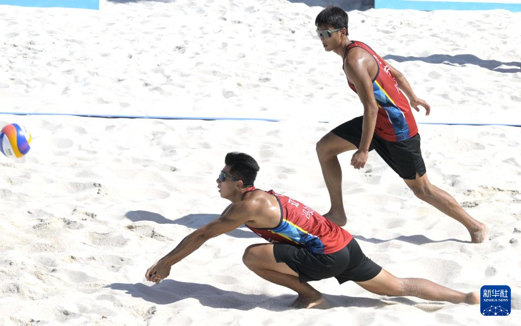 11月6日, 新疆一队选手哈力克江(后)在比赛中。最终,新疆一队组合哈力克江/萨拉木0比2不敌辽宁一队组合李焯新/薛涛,无缘1/4决赛。