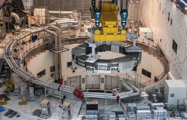 2021年4月,中國(guó)研制的PF6超導(dǎo)磁體線圈在法國(guó)ITER項(xiàng)目現(xiàn)場(chǎng)吊裝。新華社發(fā)
