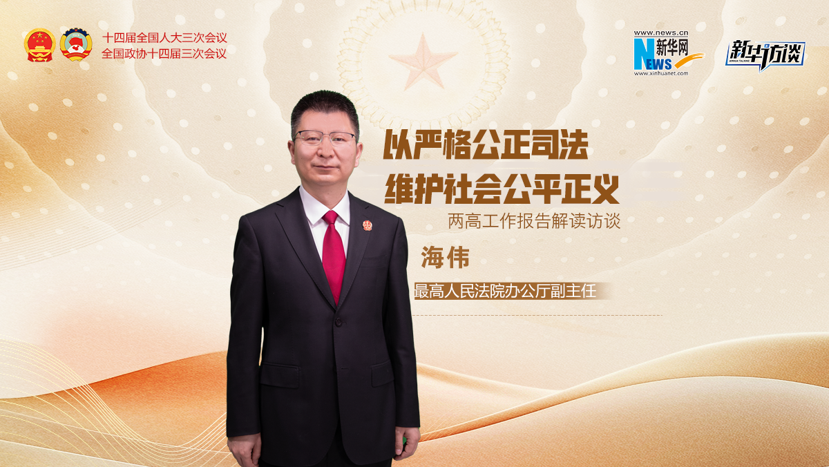 3月8日,最高人民法院办公厅副主任海伟接受新华访谈专访,围绕网民关心的话题,解读最高人民法院工作报告。