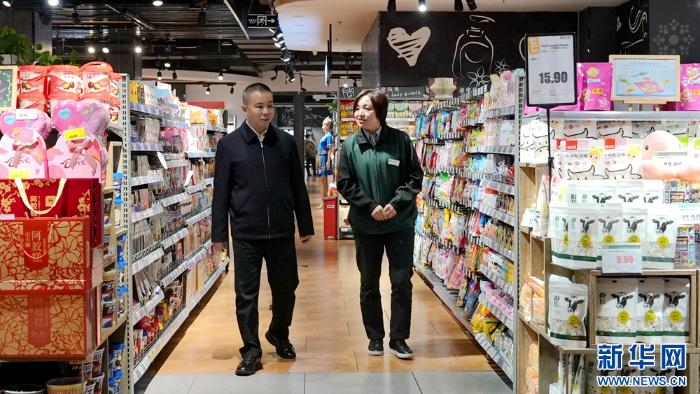 李德祥在合力超市向员工了解情况。新华网 周远钢 摄