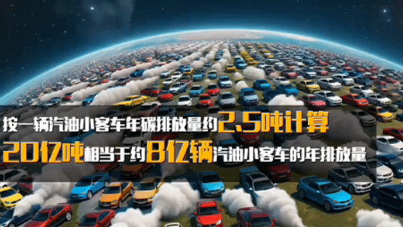 海洋每年能吸收20亿吨二氧化碳,如果按一辆汽油小客车年碳排放量约2.5吨计算,海洋一年能吸收大约8亿辆汽油小客车的年排放碳量。