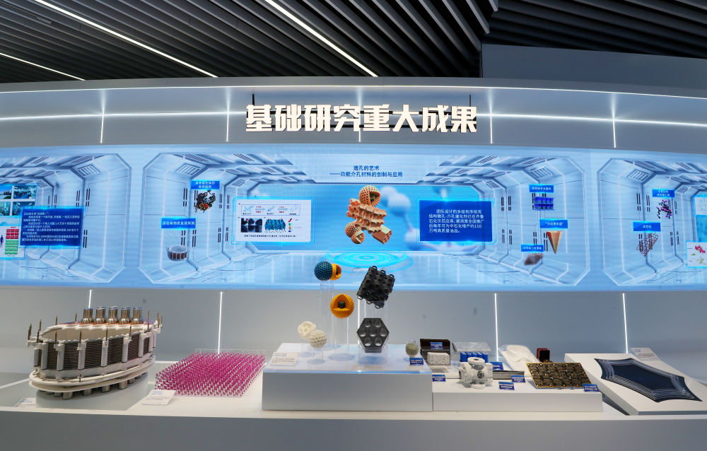 這是2023年11月29日在上海科技創(chuàng)新成果展上拍攝的基礎(chǔ)研究重大成果展臺。新華社記者 方喆 攝