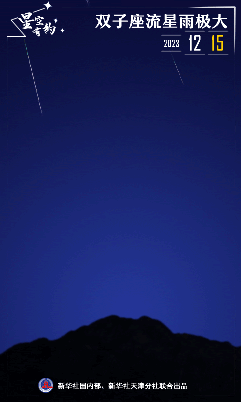 新華社天津12月12日電(記者周潤健)今年冬天最好看的流星雨即將閃亮登場。天文科普專家介紹,雙子座流星雨將于12月15日凌晨迎來極大,無月光影響,喜歡流星雨的公眾可于14日晚至15日晨進行觀測。