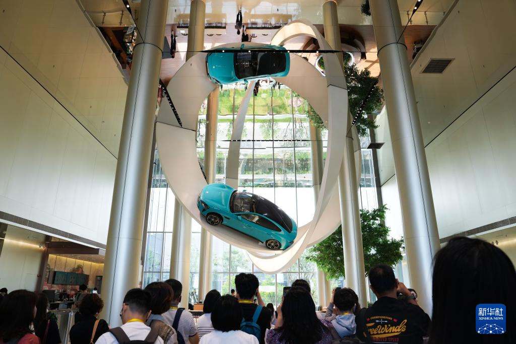 6月16日,参观者在北京小米汽车工厂的科技展厅了解小米超级电机。
