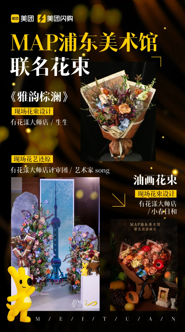 平台如何用优质创意撬动社交裂变,助力鲜花行业口碑与销量双丰收?在美团闪购鲜花与浦东美术馆的联动展位上,会发现消费者体验艺术的方式变得更加多元化了。观展不再只是简单的看展,而是变成了打卡、二创的新玩法,成为彰显个性的有趣动作。以此洞察为契机,美团闪购鲜花联手浦东美术馆,为2023年末的重磅大展“卡拉瓦乔与巴洛克奇迹”注入新活力,推出了巴洛克主题花束。消费者不仅能在展览中领略艺术之美,还能拍照打卡,在线上购买同款花束,“把艺术带回家”。
