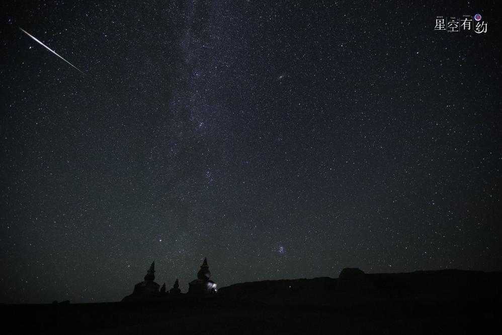 2018年8月13日,在内蒙古阿拉善盟额济纳旗拍摄的英仙座流星雨。(周博 摄)
